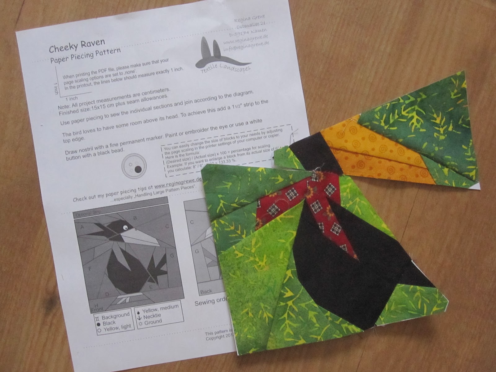 To enhance our stash, we each purchased 3 fat quarters of bright batiks. I cut them in half once we got back to my place and now we have something to start with. For the rest of the 19 squares (the quilt calls for 25 squares), we will use our own batiks.