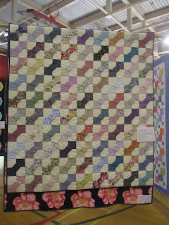 There were small tables that were covered with lovely quilts. I don't know who made them but they were all gorgeous. Unfortunately, I didn't manage to take a photo of all of them but here's three.